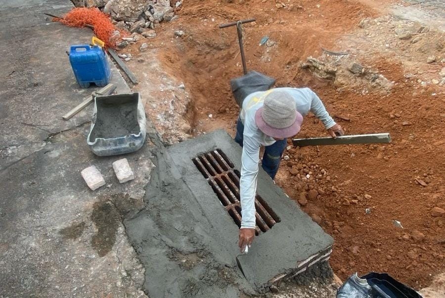 Em Felipe Camarão, na Rua da Sereia, no Alecrim, na Rua dos Canindés, e na Rua Beberibe, na Redinha, as equipes realizam a recuperação da rede de drenagem, com correção de afundamentos, substituição de tubulação danificada, realinhamento de estruturas, além de limpeza e desobstrução das redes, retirando resíduos descartados de forma irregular.