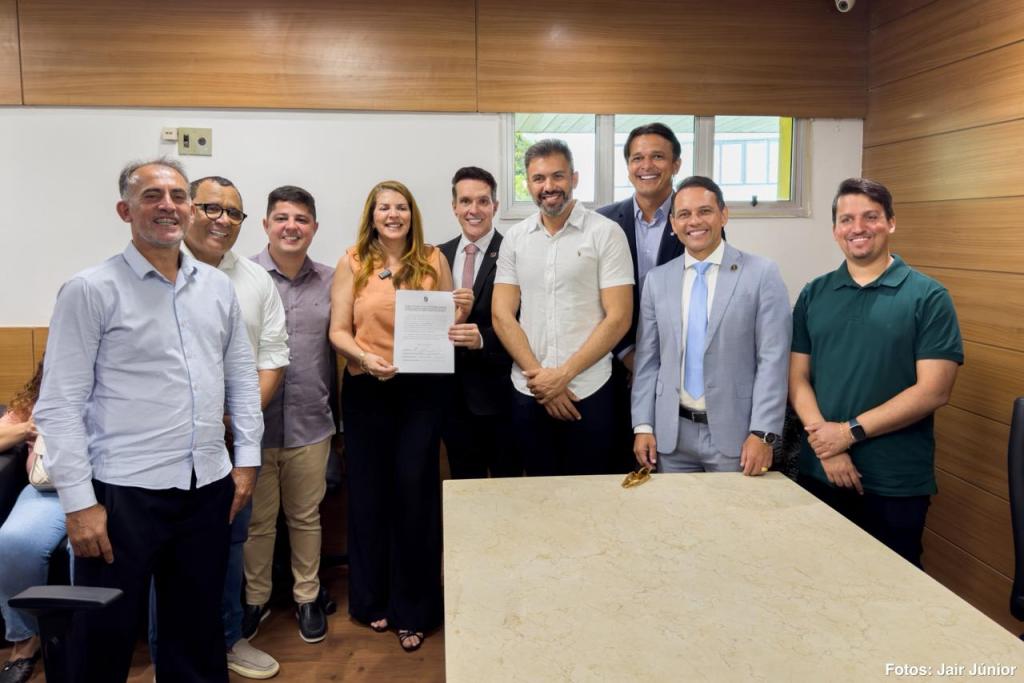 A vereadora Nina Souza (PL) reassumiu o seu mandato na Câmara Municipal de Natal nesta segunda-feira (06). A solenidade de posse contou com a presença do Presidente da CMN, Eriko Jácome (PSDB), e com os vereadores Kleber Fernandes (Republicanos), Daniel Santiago (PP), Daniell Rendall (União), Herbert Sena (PV), Cleiton da Policlínica (PSDB), Luciano Nascimento (PSD), Preto Aquino (Podemos), além de autoridades municipais.